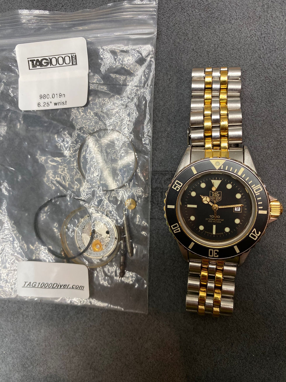 👍 Vintage TAG HEUER 1000 980.029 Two-Tone Black Gold B&G Dive Watch 844